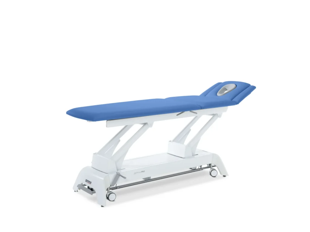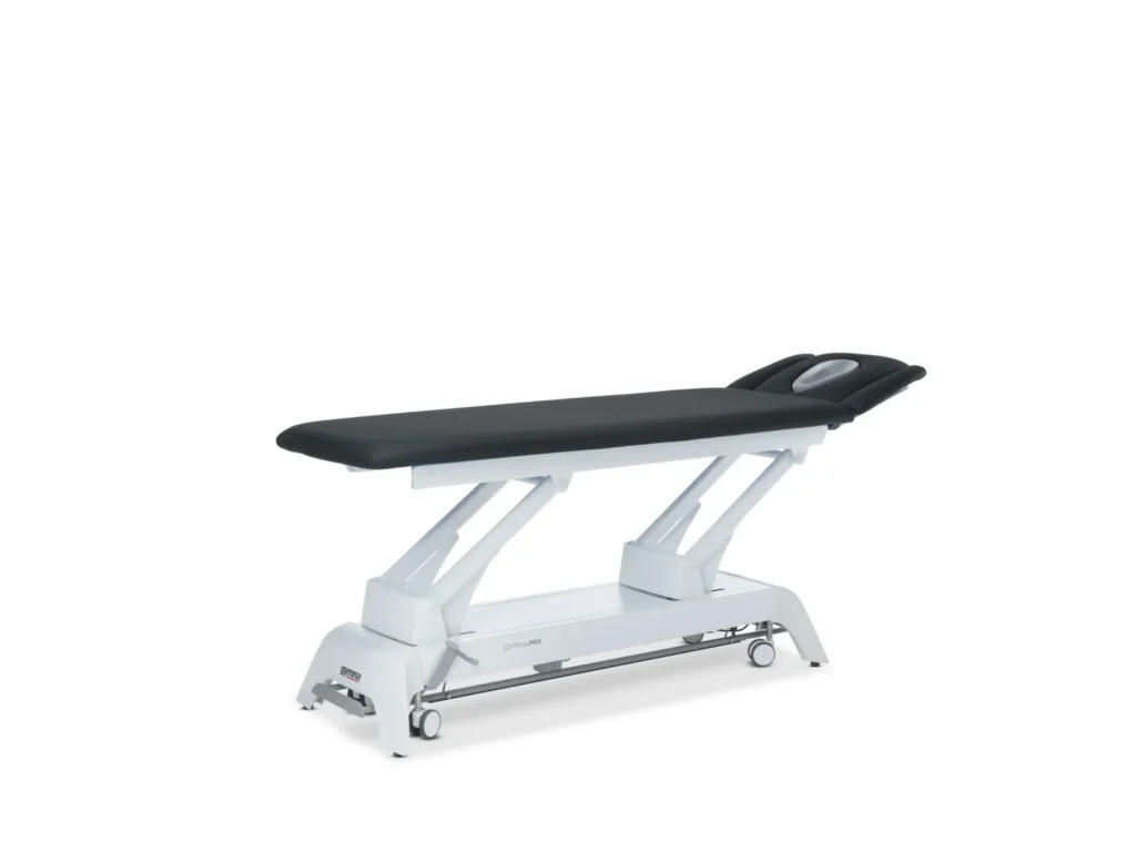 Professionelle Behandlungsliege mit einfach verstellbarem Kopfteil, wodurch diese vor allem bei Behandlungen in liegender Haltung eingesetzt wird.