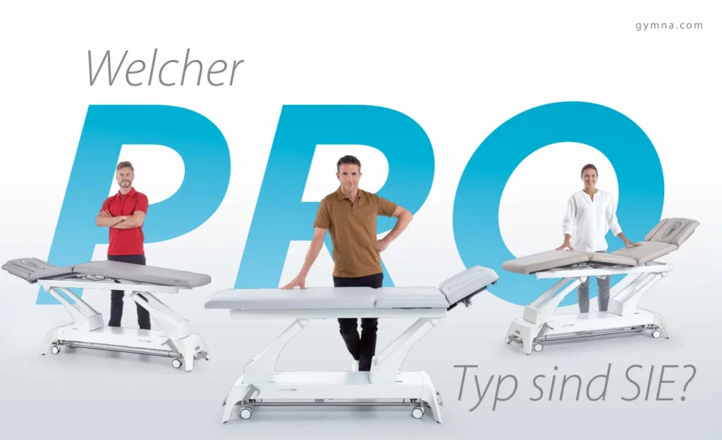 Gymna.PRO kombiniert Gymnas jahrelange Erfahrung in der Entwicklung von Behandlungsliegen mit der tagtäglichen Praxiserfahrung der professionellen Benutzer. Diese professionellen Physiotherapeuten brauchen eine Reihe von Funktionalitäten, um adäquat behandeln zu können. Gymna hat weiter an der Verbesserung dieser Funktionalitäten gearbeitet und damit ein neues Niveau erreicht. Das Ergebnis ist eine Reihe von PREMIUM ESSENTIALS. Mit PREMIUM ESSENTIALS setzt Gymna völlig neue Maßstäbe für Professionalität.