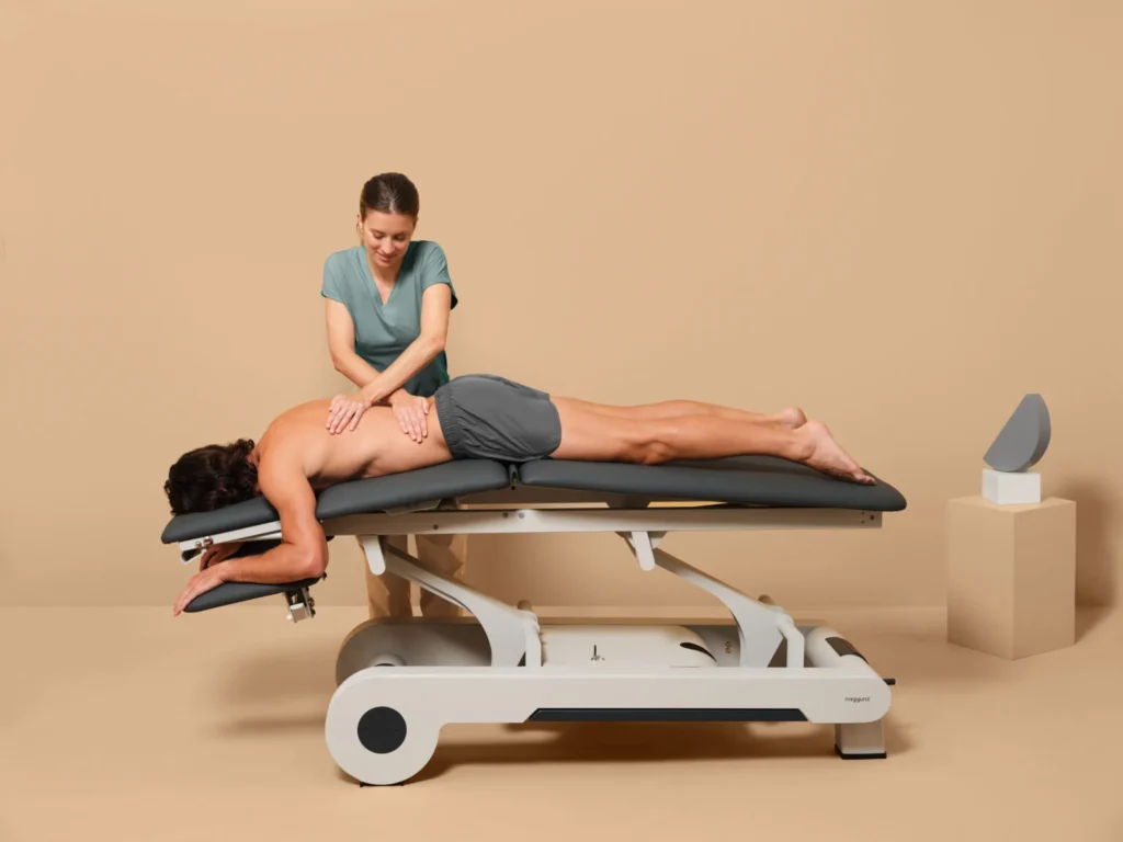 Naggura – Pioniere im Produktdesign: Diese neue Generation von Behandlungsliegen überzeugt durch visionäre Formgebung und intuitive, komfortable Handhabung. Hochwertige Materialien und innovative Einstellmöglichkeiten sorgen für optimale Behandlungsergebnisse.
