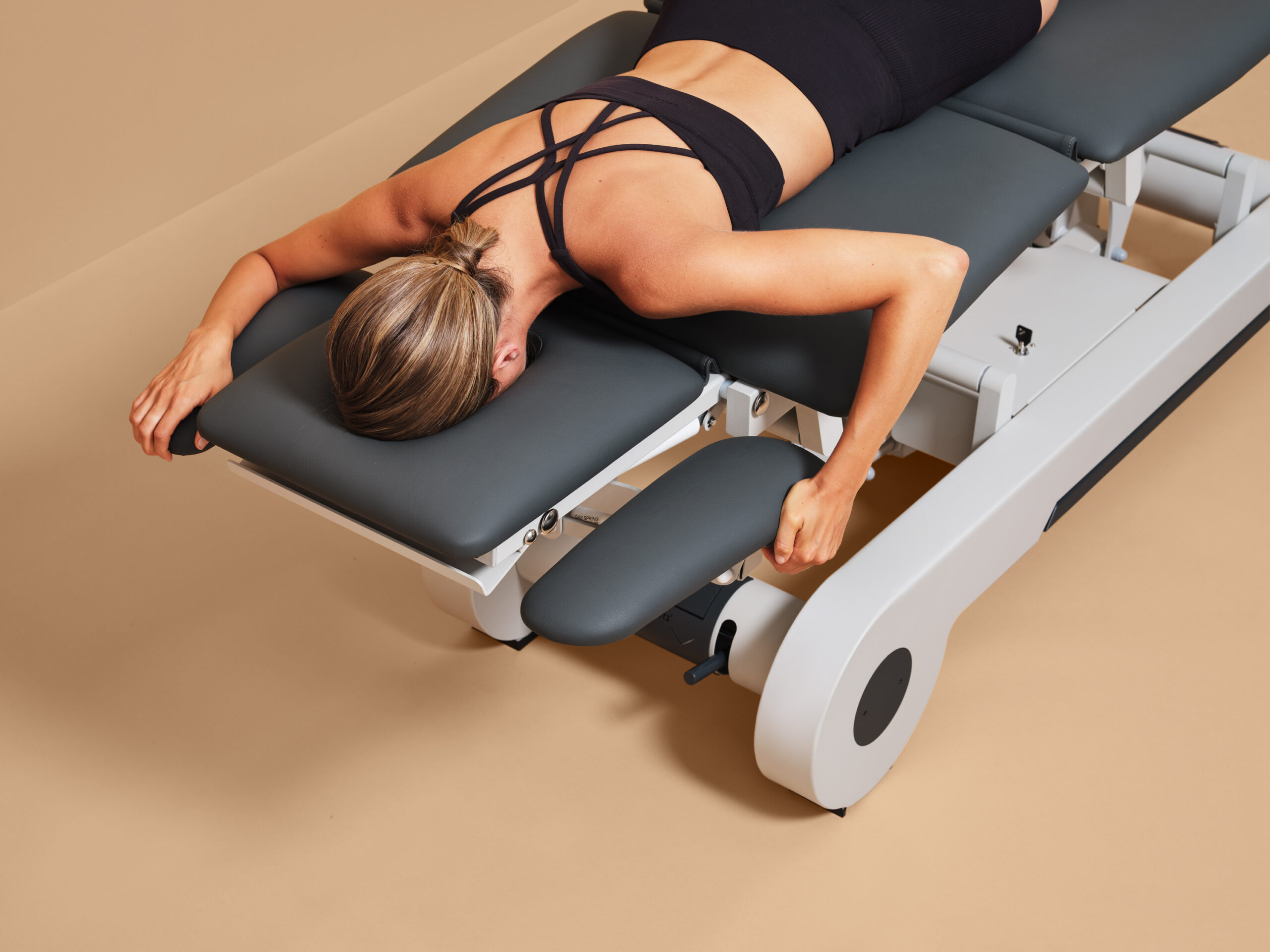 Die ergonomischen und patentierten TWINLIFT©-Armstützen der Nagurra N’RUN sorgen beim Patienten für optimalen Liegekomfort. Die Armstützen können vom Patienten leichtgängig und autark in eine beliebige Position angehoben oder abgesenkt werden. Dank des smarten Produktaufbaus kollidiert das TWINLIFT©-System bei Behandlung im Kopfstützenbereich nicht mit dem Therapeuten oder seinem Hocker. So schafft die Nagurra N’RUN-Liege ideale Arbeitsbedingungen im anspruchsvollen Praxisalltag.